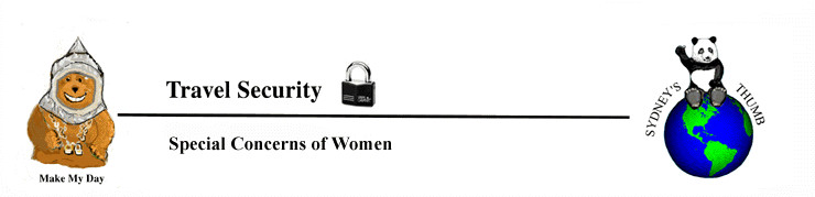 In preparation for a solo trip, you should review the specialized literature and videos on female travel. These discuss specific harassment scenarios and the pros and cons of different emergency responses.